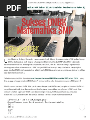 Soal unbk matematika smp 2020 dan pembahasannya pdf. Check spelling or type a new query. We did not find results for: Maybe you would like to learn more about one of these?